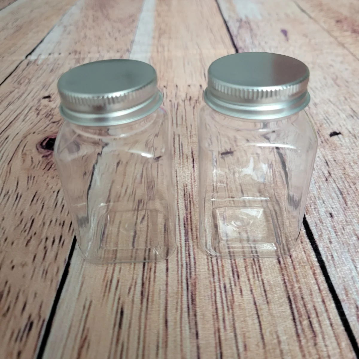 2 petits pots en plastique transparent de 110 ml