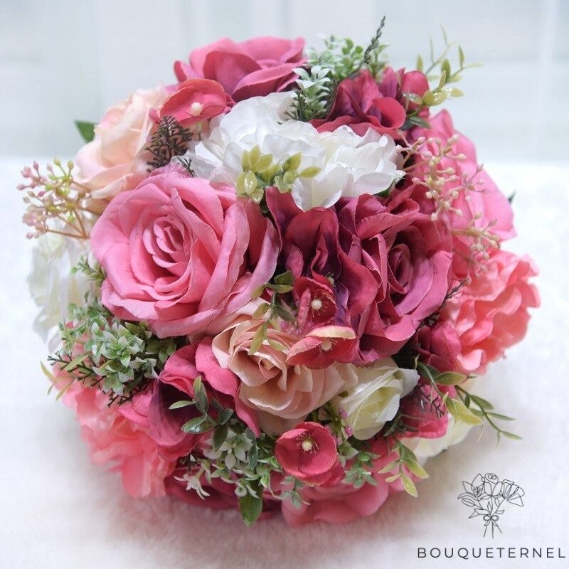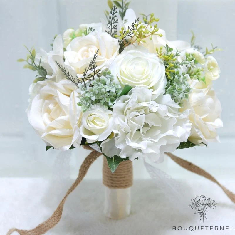 Sublimez votre tenue avec ce bouquet de mariée associant pivoines et roses artificielles.