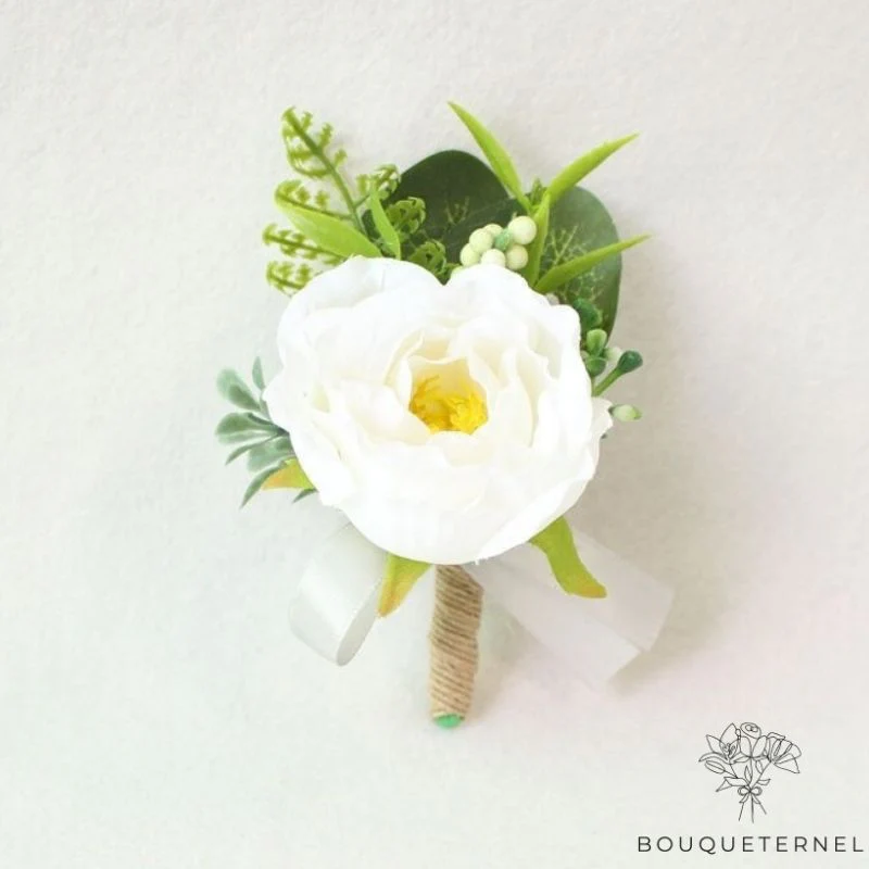Ne cherchez plus, vous êtes au bon endroit pour trouver la boutonnière idéale pour les témoins de mariage. Cette fleur artificielle, au rendu naturel et raffiné, sublime chaque costume avec style et simplicité. Disponible toute l’année, elle ne fane pas, ne s’abîme pas, et vous garantit un look impeccable du début à la fin de la journée.