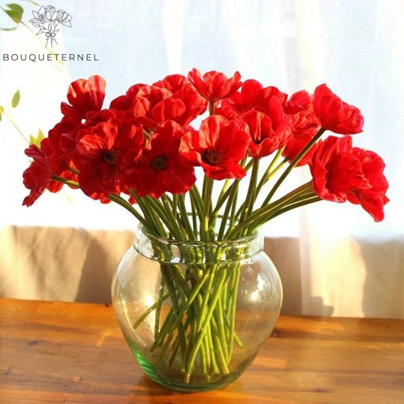 🌺 Bouquet de Coquelicots Dubium Artificiels – Élégance Rouge Durable