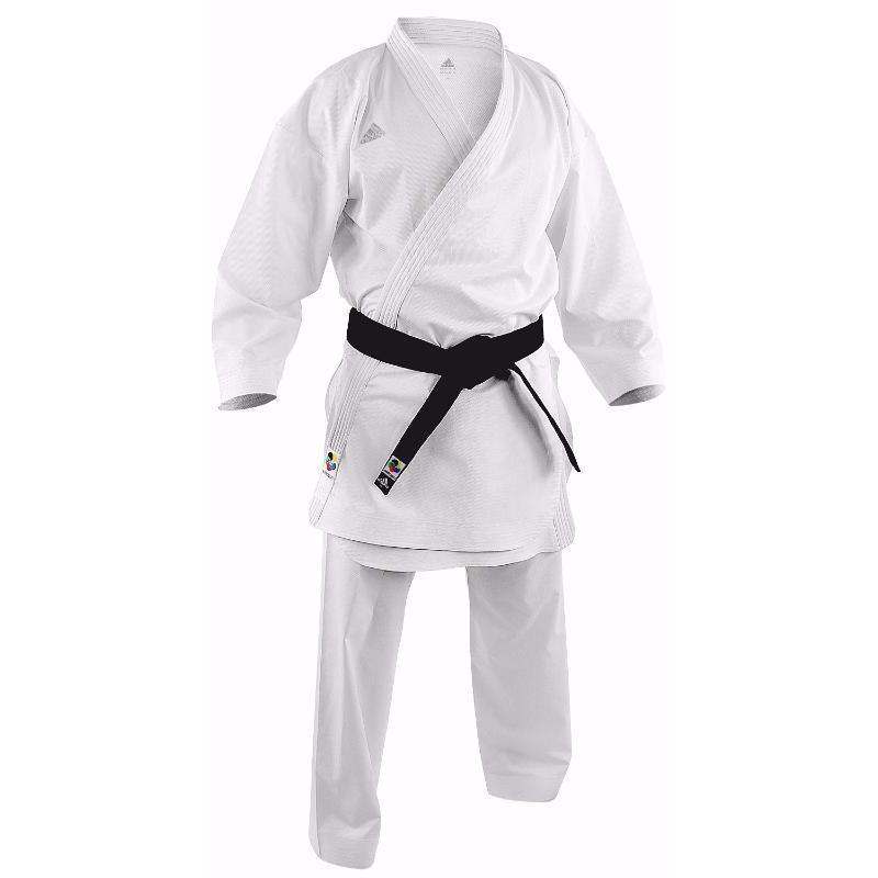- Design officiel : logo adidas brodé gris argent, patch WKF tissé.