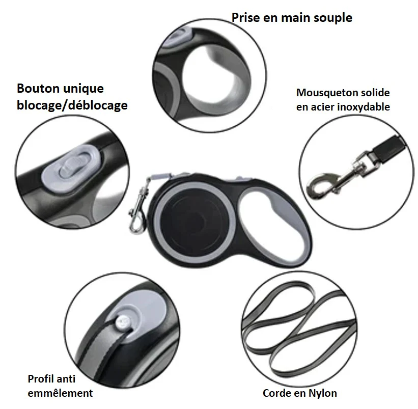 Laisse de randonnée à enroulement automatique