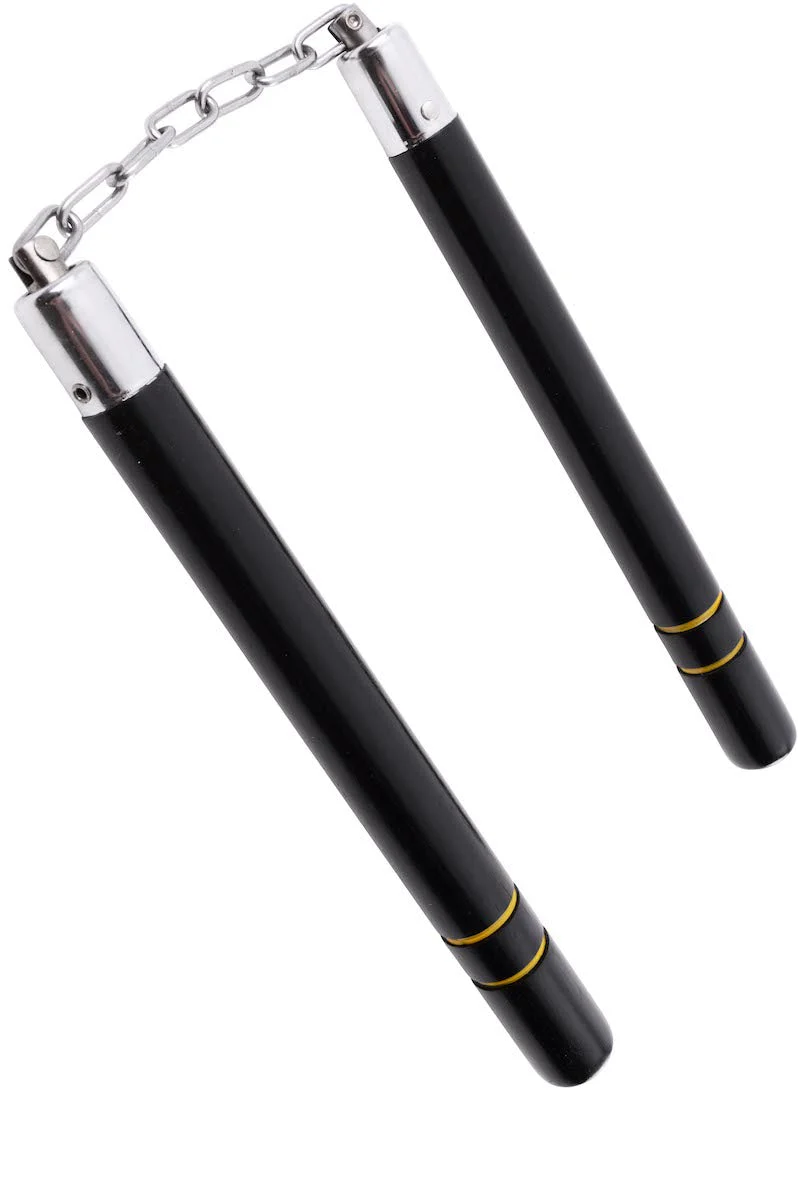 Nunchaku Bois Chaîne Rond Dojo Master – Noir avec liserai Jaune (30 cm) : Puissance et Fluidité pour les Maîtres du Nunchaku
