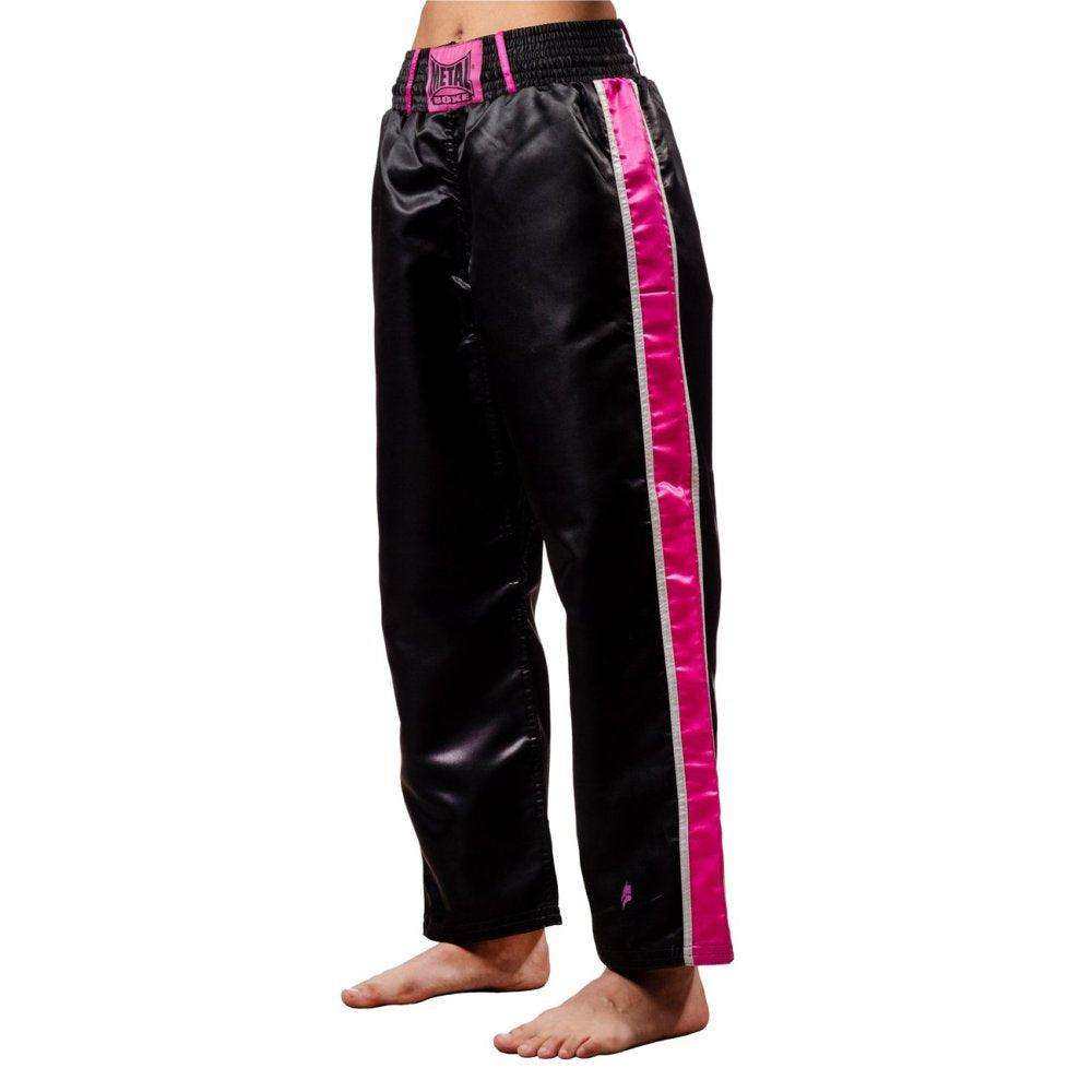 Le pantalon de Full Contact Metal Boxe TC55, en coloris noir et fuchsia, allie esthétisme et technicité pour offrir aux pratiquantes de kick boxing et de full contact un confort optimal et une liberté de mouvement totale.