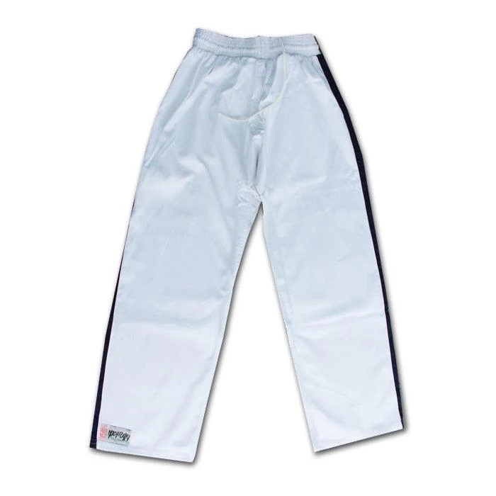 Fabriqué en coton robuste, ce pantalon est conçu pour résister aux entraînements intensifs. Les bandes bleu nuit sur les côtés apportent une finition esthétique fidèle aux tenues traditionnelles du Yoseikan Budo.
