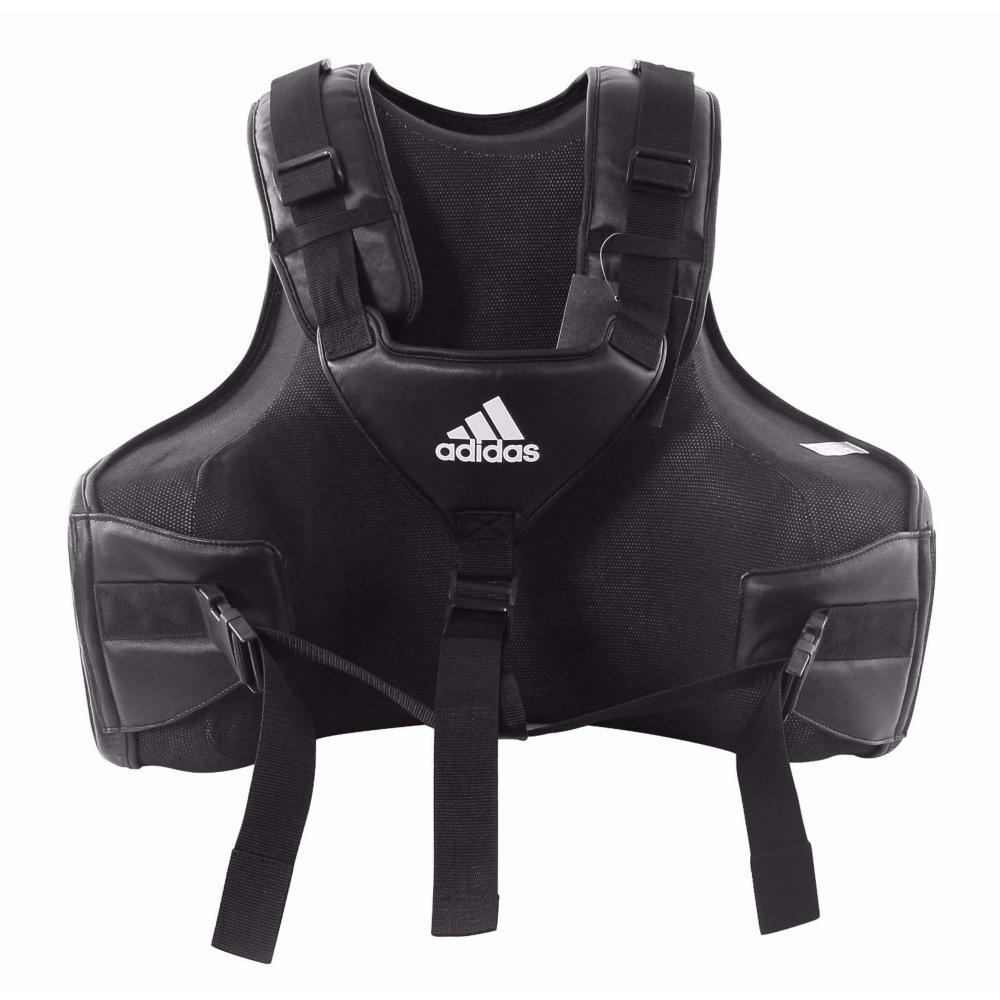 Plastron haute protection Adidas, sa forme ergonomique recouvre parfaitement le torse, accessoire idéal pour les entraineurs et les compétiteurs.