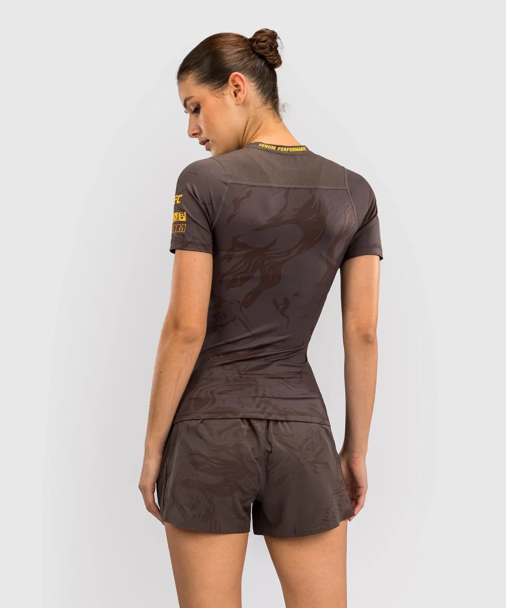 Idéal pour le grappling et les entraînements de MMA, le rashguard à manches courtes UFC Fusion par Venum est essentiel pour toute athlète sérieuse. Associez-le avec le legging de la même collection pour une tenue complète optimisée pour la victoire.