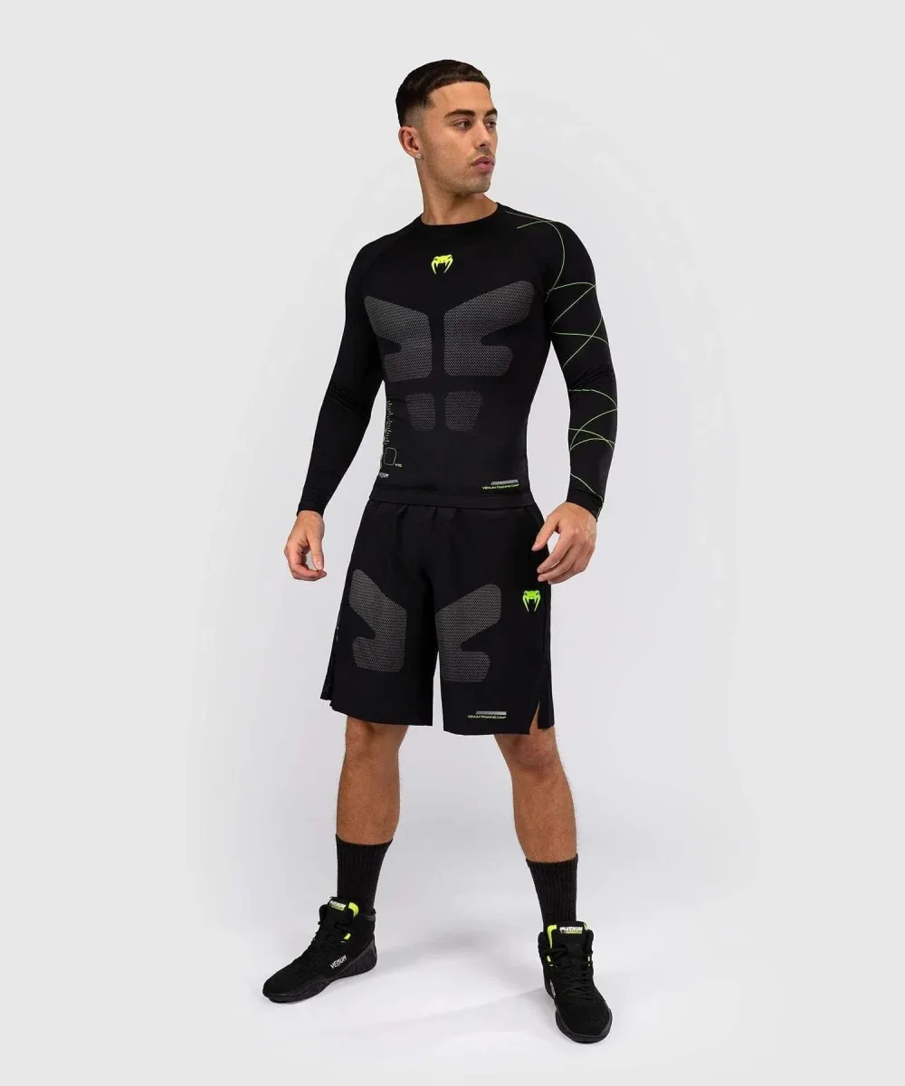 Le Rashguard manches longues Venum Training Camp 4.0 – Noir/Vert Neo offre un maintien musculaire ciblé, réduit la fatigue et protège votre peau des frottements. Sa technologie Dry Tech évacue la transpiration, tandis que les empiècements mesh améliorent la ventilation lors des rounds de MMA, grappling ou vos séances de musculation.