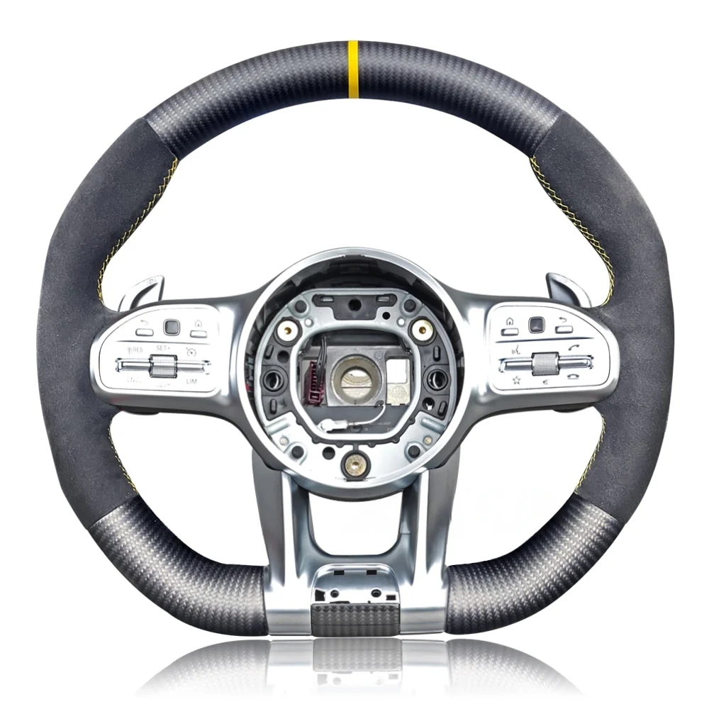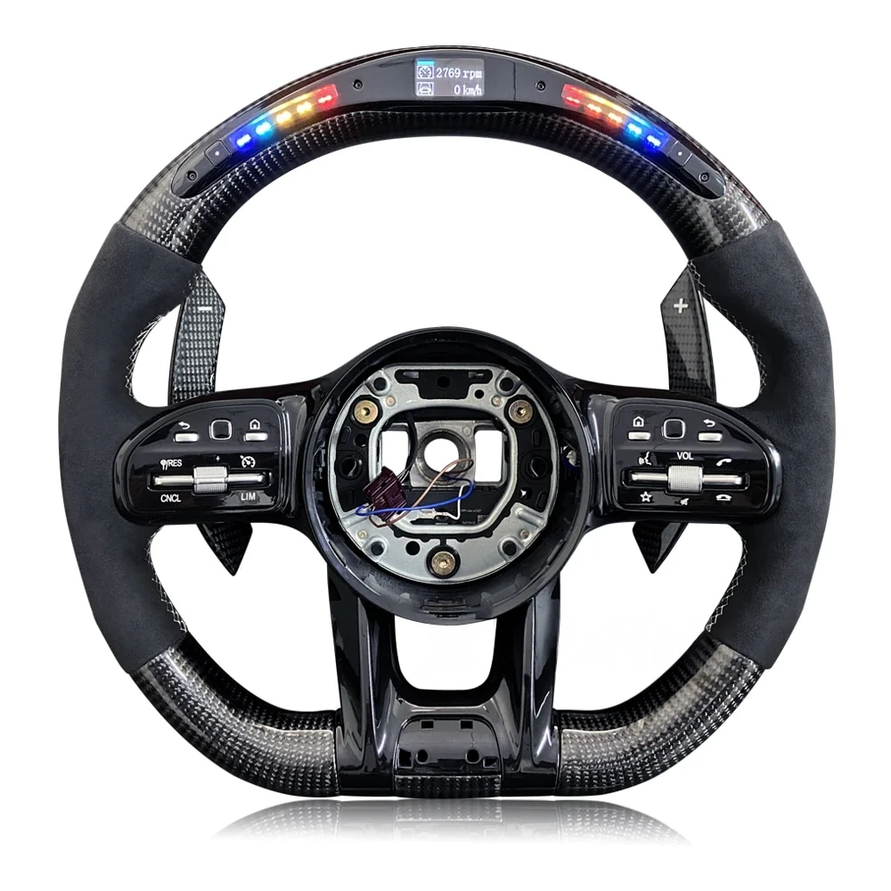 Le volant carbone Mercedes AMG performance est compatible avec les modèles de Mercedes Classe A, B, C, E, S, GLS, GLA et C63 produits entre 2012 et 2021. Il est facile à installer et peut être remplacé rapidement pour améliorer l’expérience de conduite de votre voiture.
